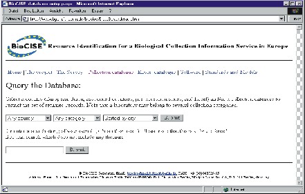 The BioCISE collection catalogue (http://www.bgbm.org/BioCISE/database/) is based on the results of the BioCISE survey (see Chapter VII). It realizes a simple variant of such an information system by offering data from the following information areas: