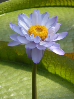 Nicht nur die Romantiker waren auf Suche nach der „blauen Blume". Als Mitte vorigen Jahrhunderts die Abbildung einer riesigen blauen Seerose, deren Heimat Australien ist, in England verbreitet wurde, setzte ein eifriger Wettlauf um den Besitz dieser Aufsehen erregenden Neuheit ein, und den Händlern wurden große Summen für eine Knolle geboten. Bei der Riesen-Seerose erreichen die Blüten Superlative. Sie schwimmen nicht wie bei den heimischen Seerosen auf dem Wasser, sondern erheben sich bis zu einem halben Meter über dem Wasser. Die himmelblauen, schalenförmigen Blütenblätter stehen im Kontrast zum dichten Kranz der hellgelben, nach innen gekrümmten zahlreichen Staubblätter. Die Blüten sind eine Woche zunächst tagsüber, dann auch nachts, geöffnet. Mit einem Durchmesser von bis zu 30 cm gehören sie zu den größten des Pflanzenreichs.