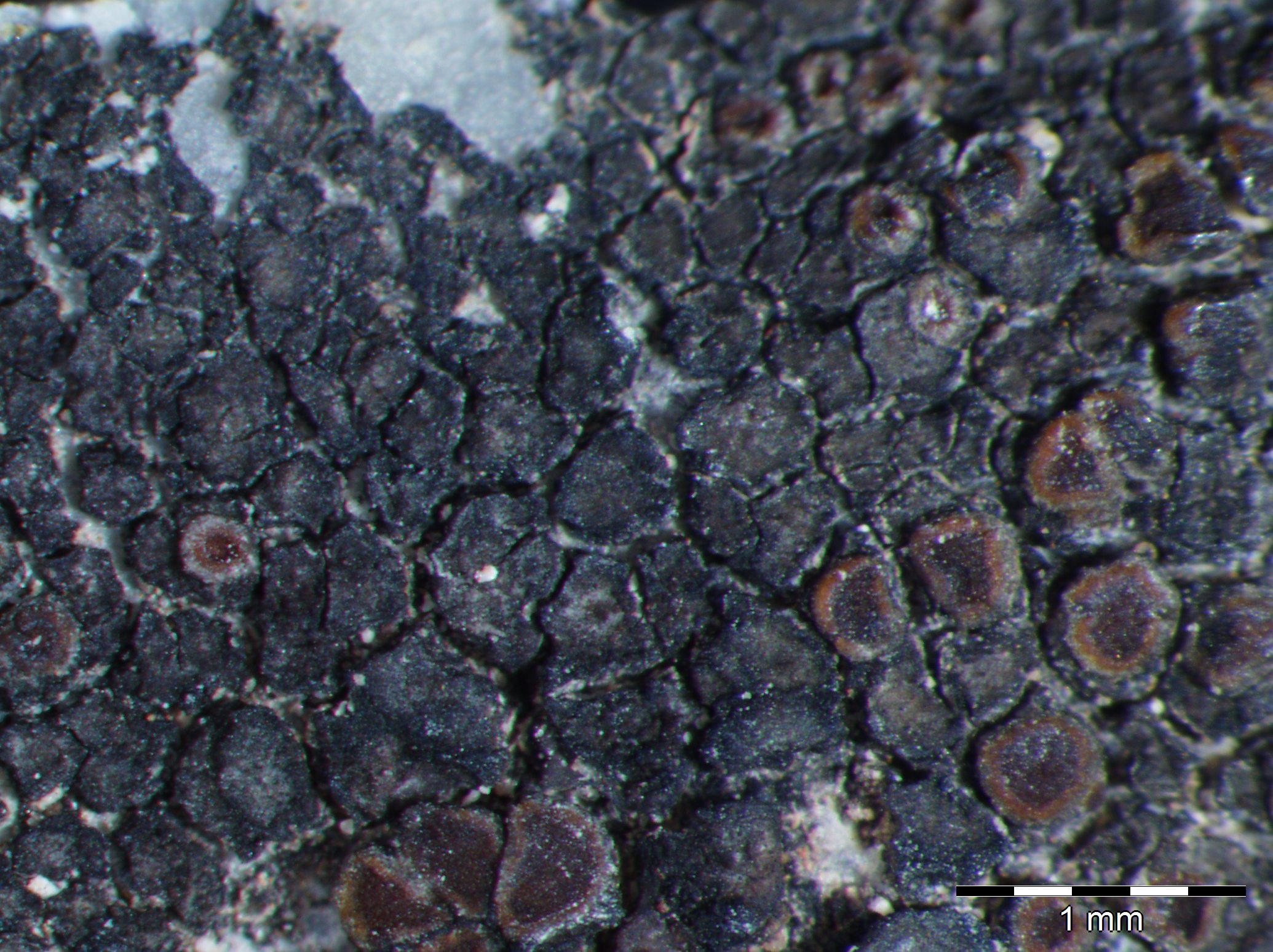 marginal part of thallus (Sipman 53818); picture length = 7 mm; click for large picture. central part of thallus (Sipman 53818); picture length = 7 mm; click for large picture.