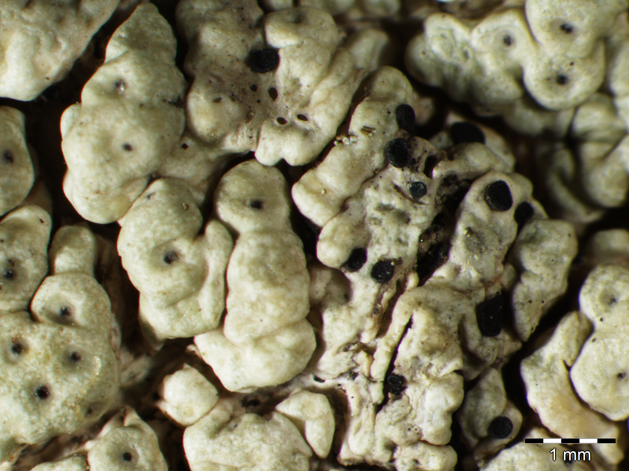 Samothraki, on Pertusaria pertusa (Sipman & Raus 59600); click for enlarged picture.