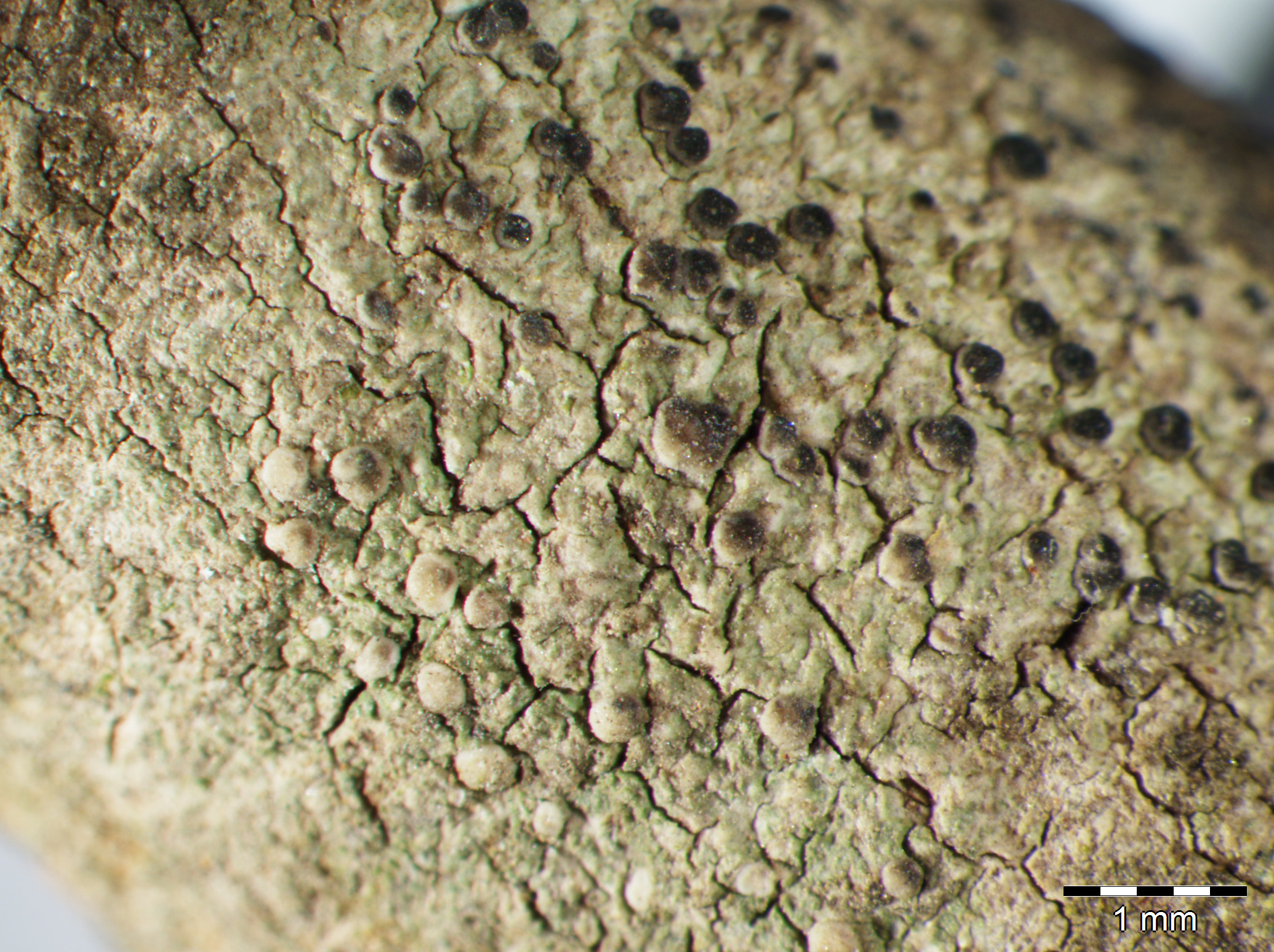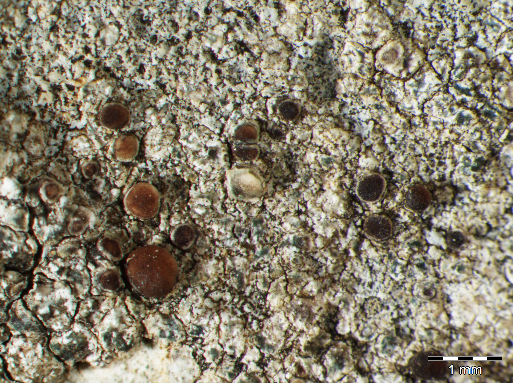 Lecania sylvestris var. umbratica (Arnold) M. Mayrhofer, Chios (Sipman & Raus 60682); click for large picture.