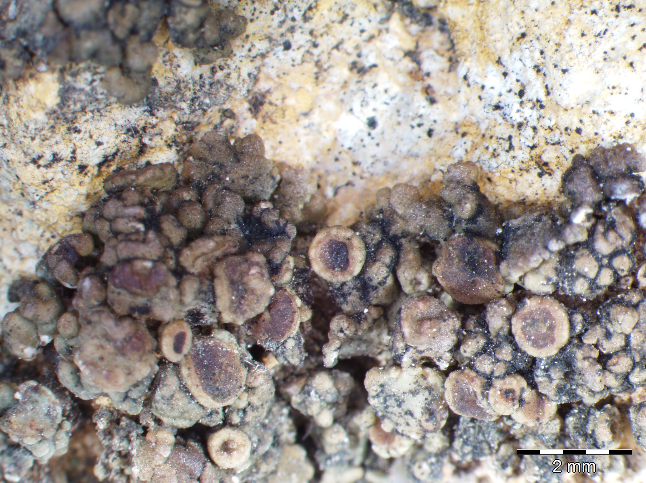 Thasos, brown apothecia (Sipman & Raus 59020b); click for large picture.
