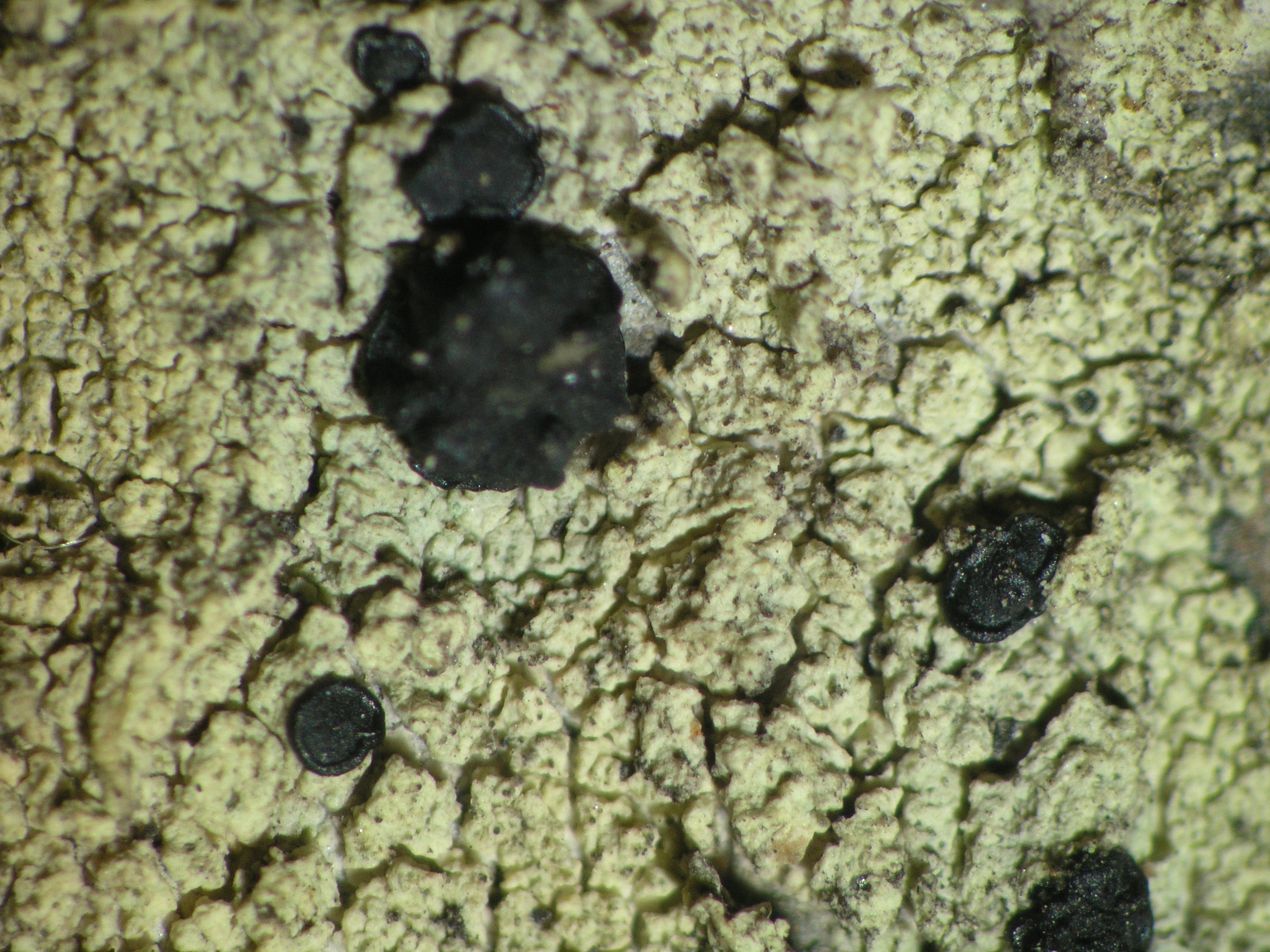 Lecidella elaeochromoides (Nyl.) Knoph & Hertel - Identification provisional. TLC: 4,5-dichloronorlichexanthone.