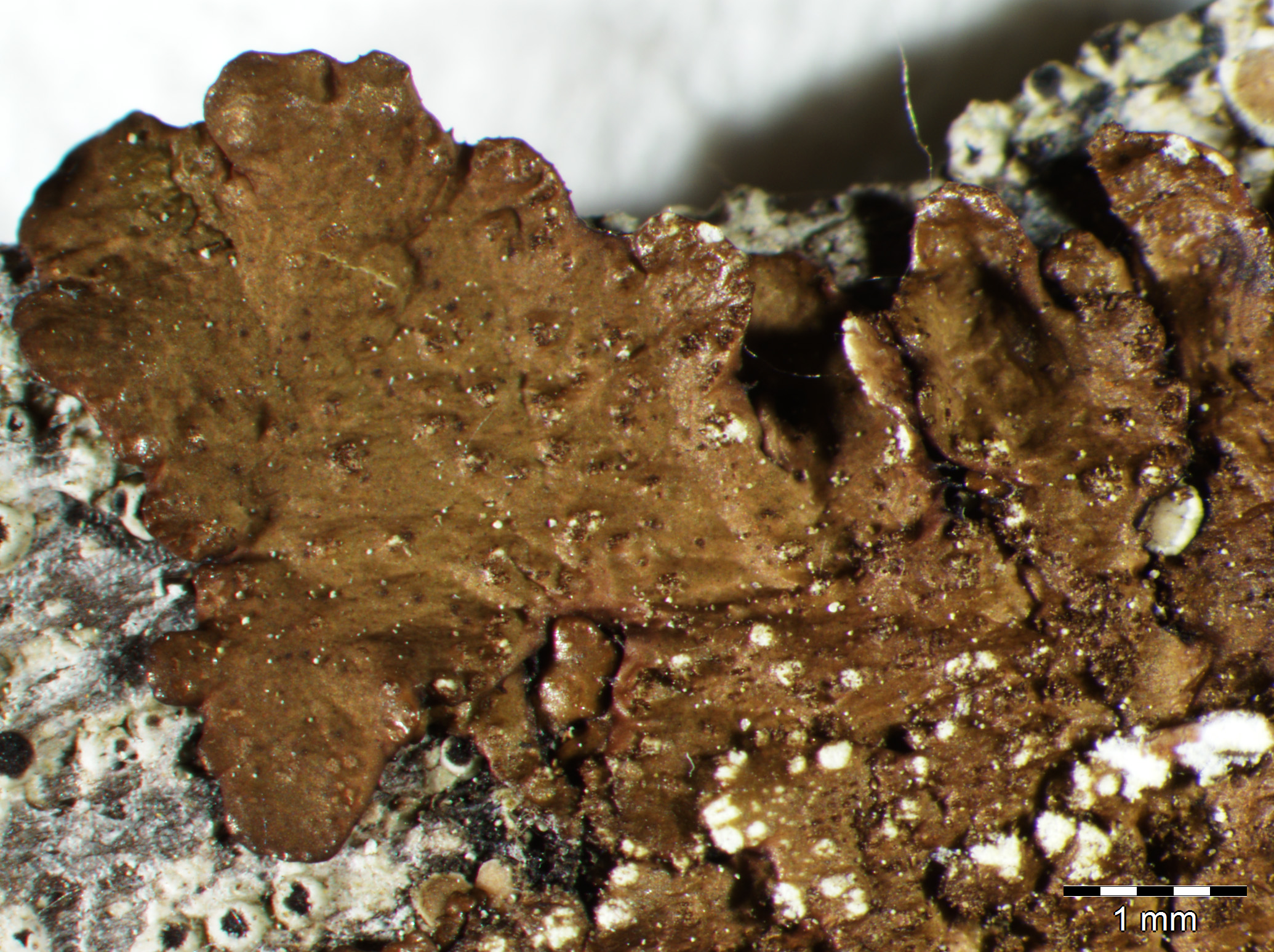 Melanelixia fuliginosa O. Blanco et al. (syn. Melanelia fuliginosa (Fr. ex Duby) (Duby) Essl.) -