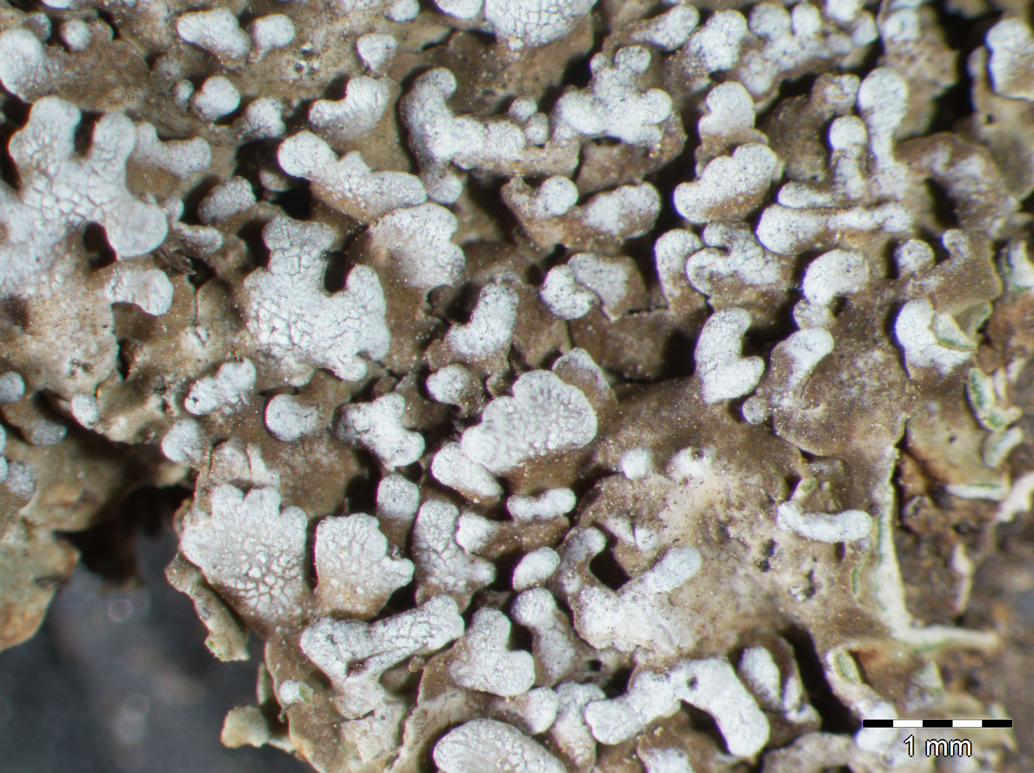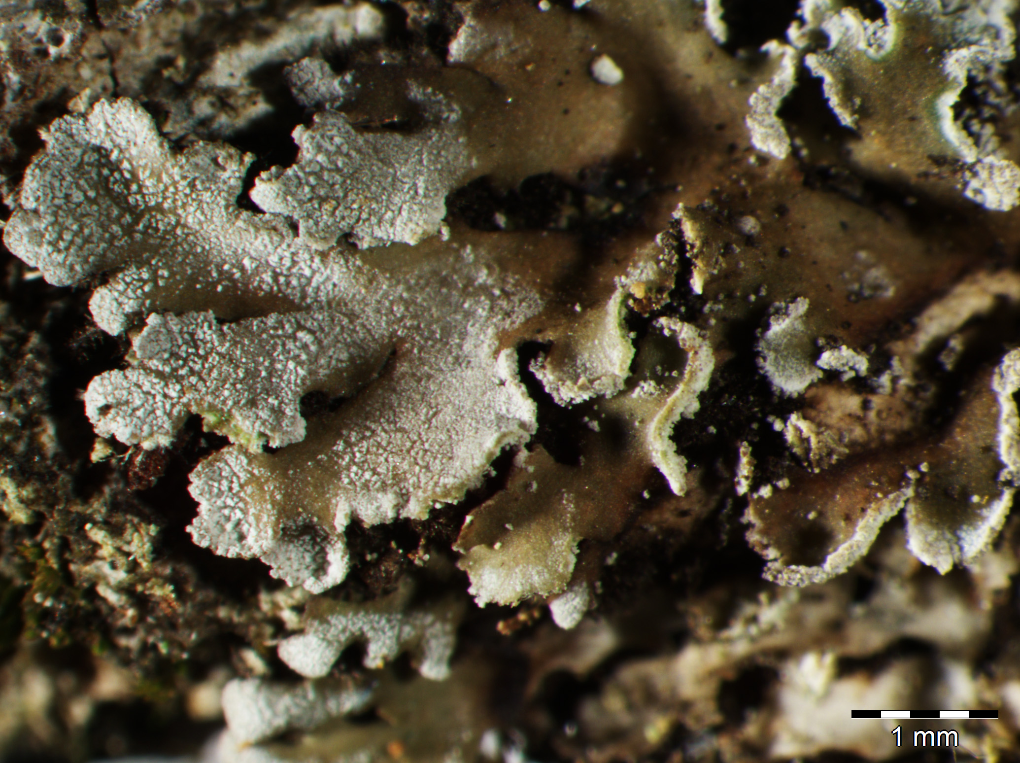 (Sipman 53850a) var. lilacina; picture length = 7 mm; click for enlargement. (Sipman 53850a) var. lilacina; picture length = 7 mm; click for enlargement.