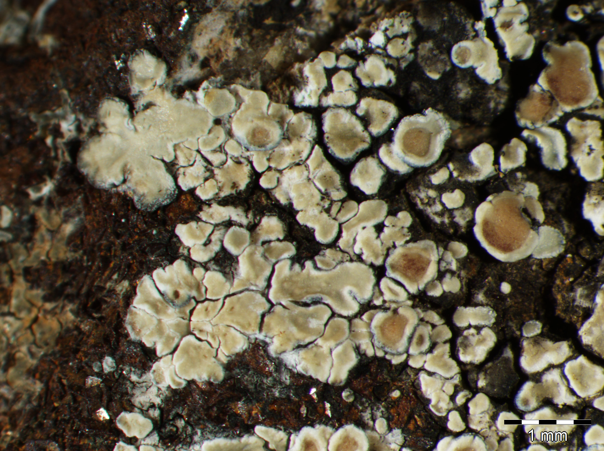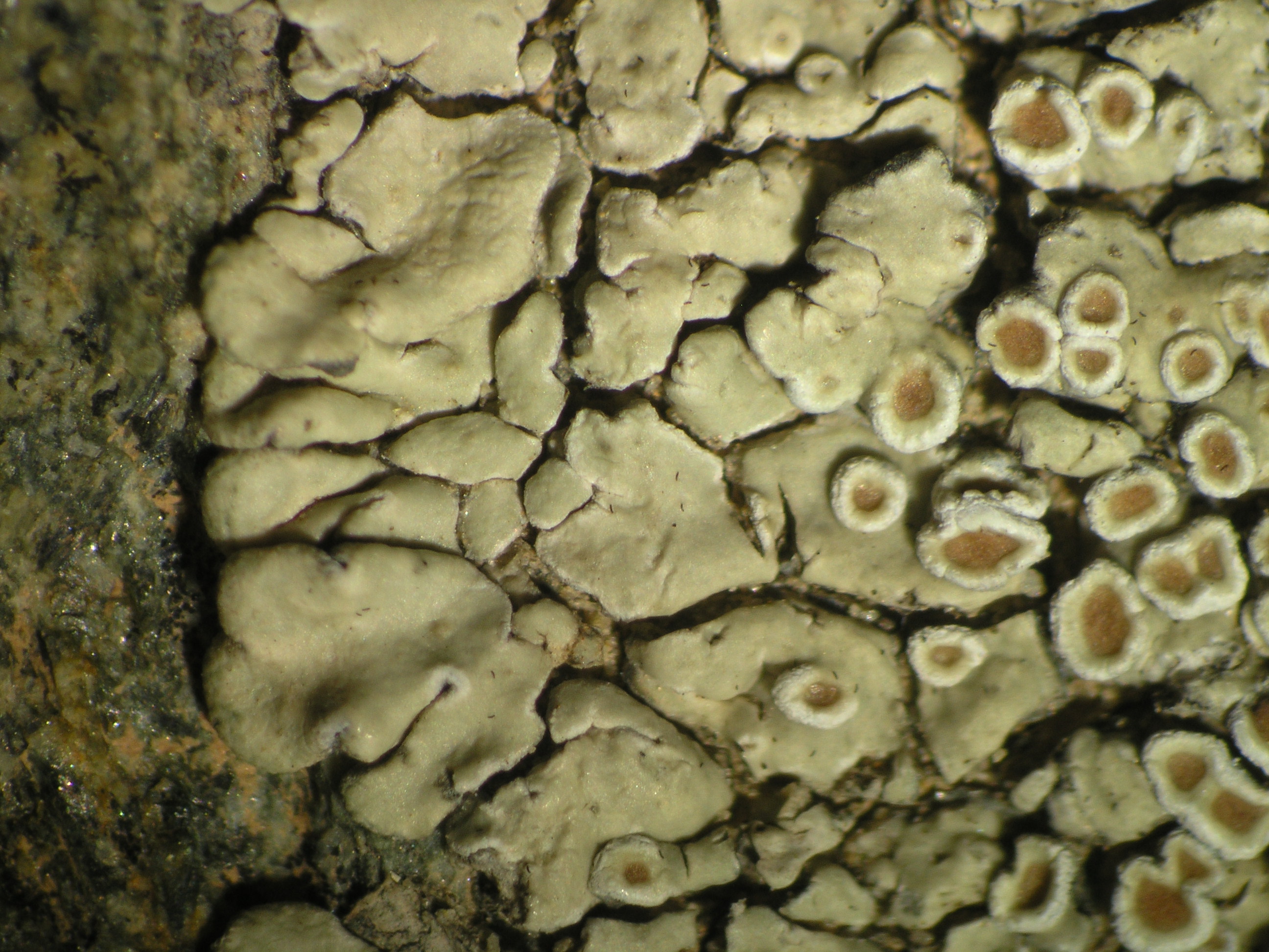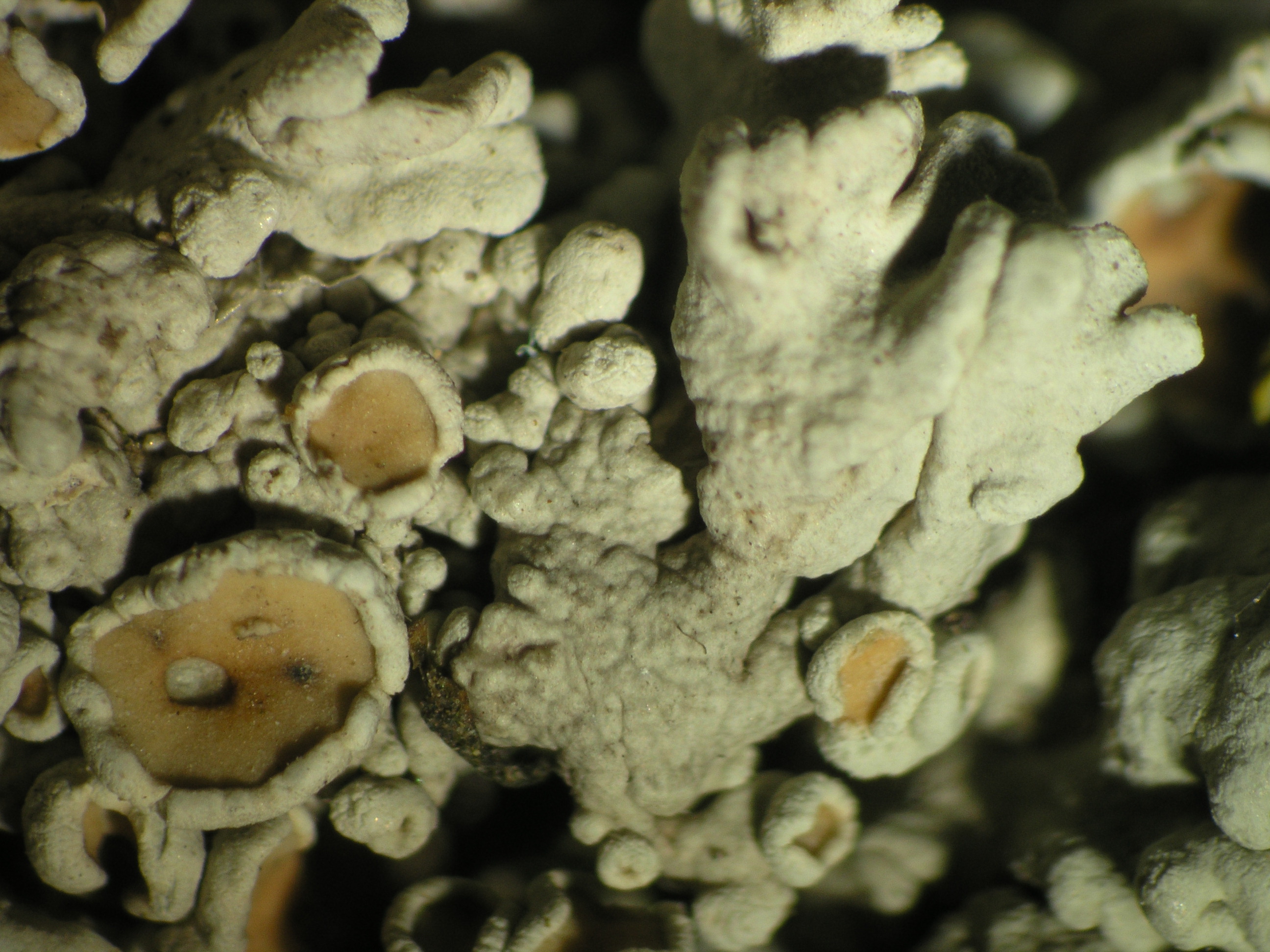 (Sipman 53964), thallus; picture length = 7 mm; click for enlargement. (Sipman 53964), apothecia; picture length = 7 mm; click for enlargement.
