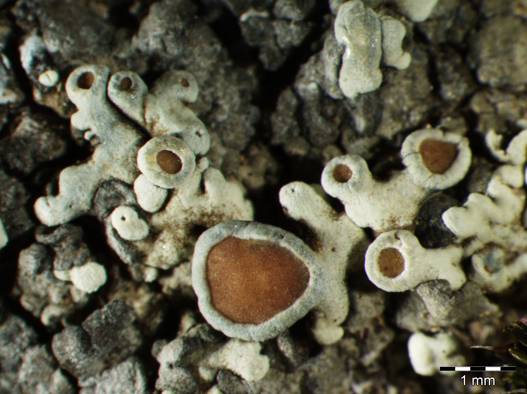 (Sipman 53764); picture length = 7 mm; click for enlargement. apothecia (Sipman 54560); picture length = 7 mm; click for enlargement.