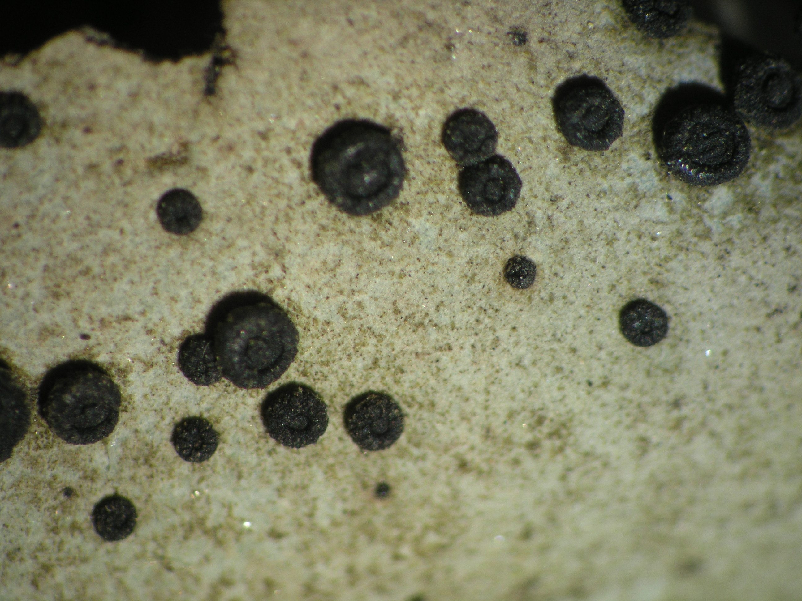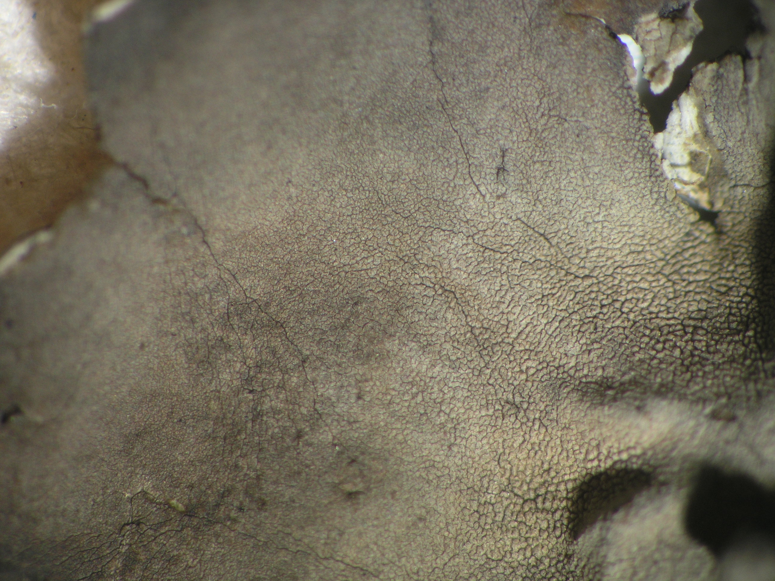 (Sipman 53943) thallus upper side; picture length = 7 mm; click for enlarged picture. (Sipman 54121) thallus lower side; picture length = 7 mm; click for enlarged picture.