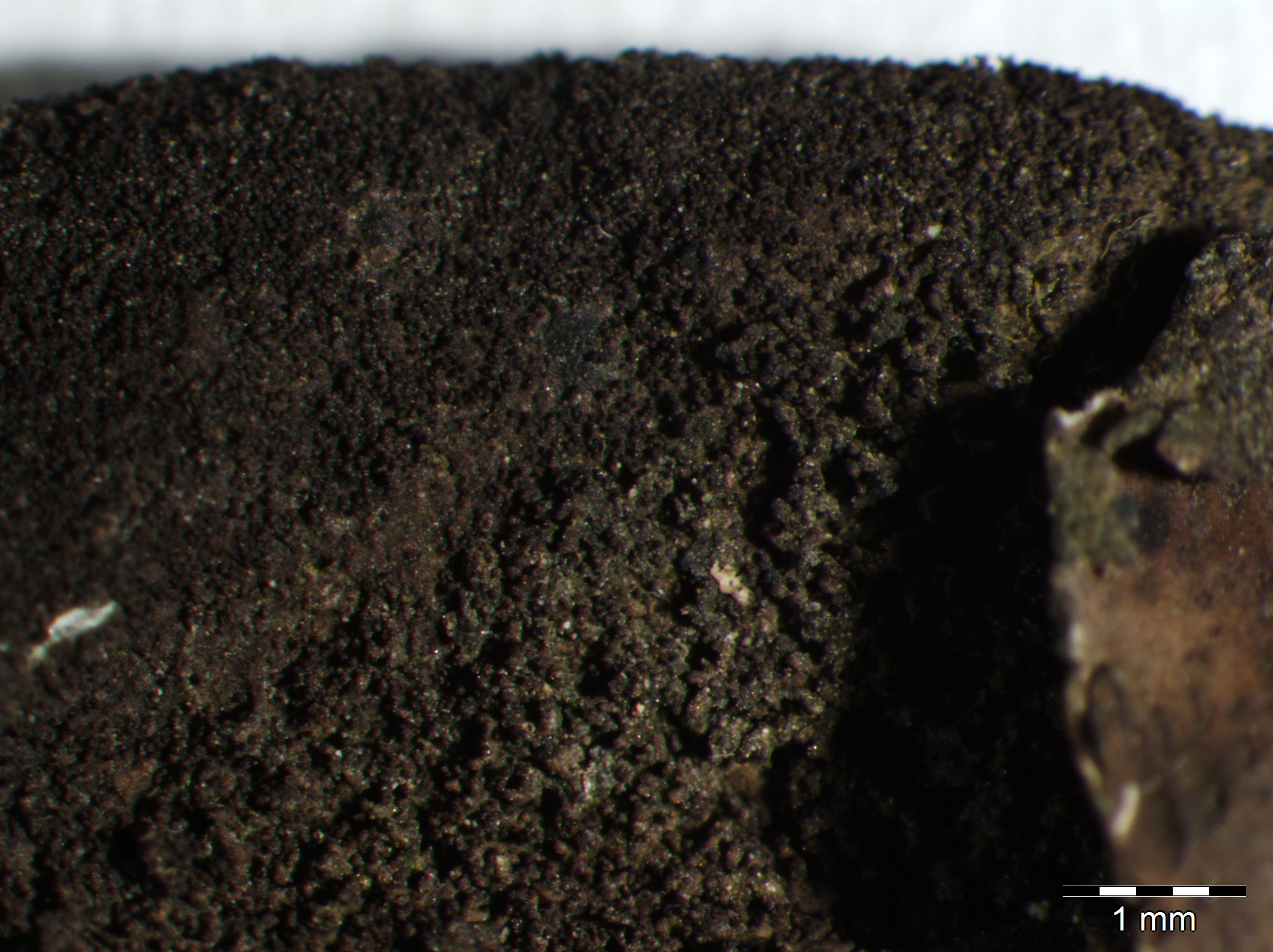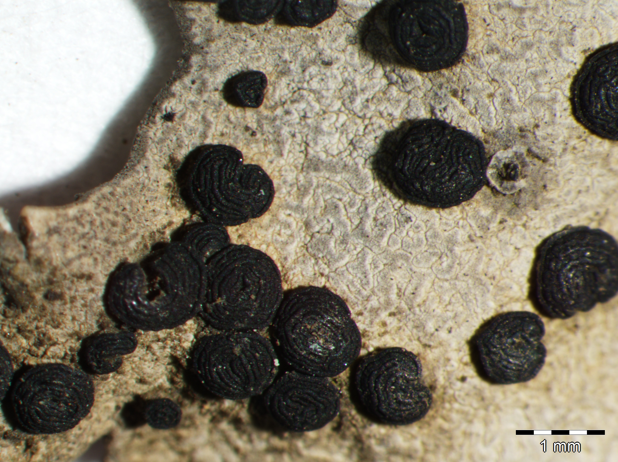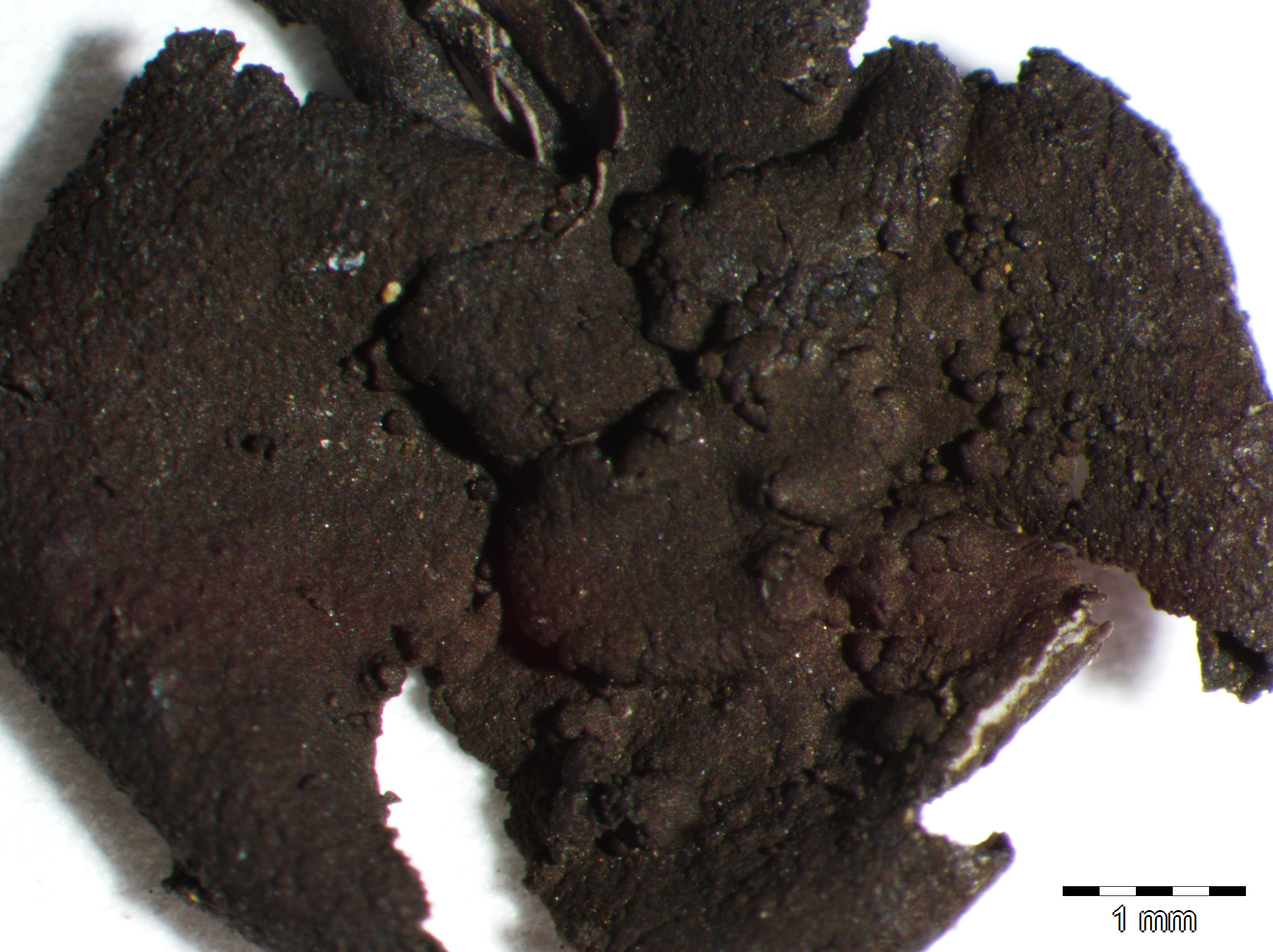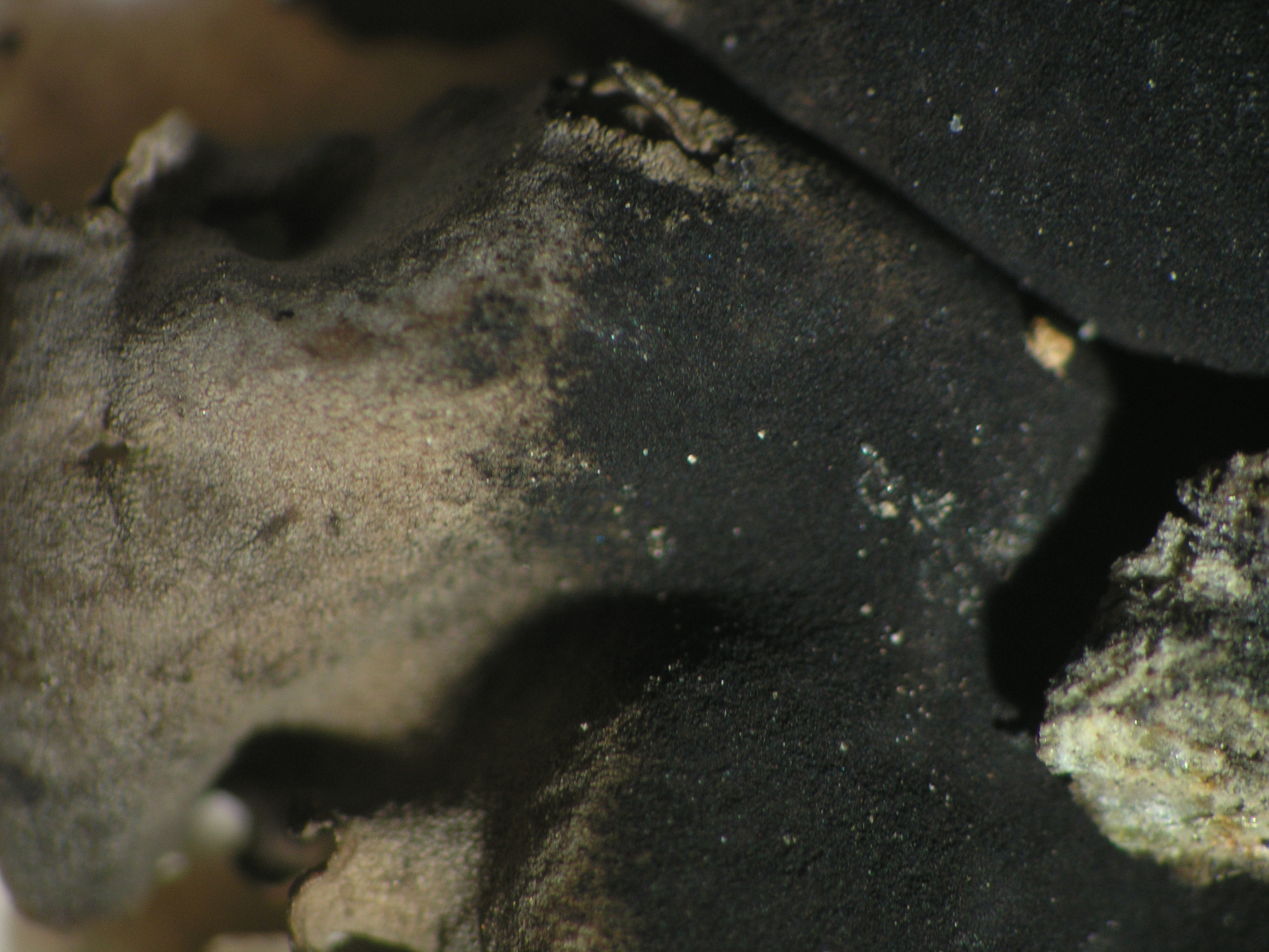 (Sipman 53947) thallus upper side; picture length = 7 mm; click for enlarged picture. (Sipman 53947) thallus lower side; picture length = 7 mm; click for enlarged picture.
