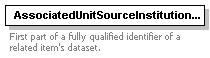| source | <xs:element name="OriginalSource"> <xs:annotation> <xs:documentation>Properties of the original data source, also providing a unique identifier for the dataset</xs:documentation> <xs:appinfo> <sea:FullName>Original source</sea:FullName> <sea:Audience>BioCASE</sea:Audience> <sea:Audience>CODATA TDWG</sea:Audience> <sea:Reviewer> </sea:Reviewer> <sea:ExistingStandards> </sea:ExistingStandards> <sea:Content>Properties of the orignal database or other datasource from which the ABCD-document is derived</sea:Content> <sea:Examples> </sea:Examples> <sea:Comments> </sea:Comments> <sea:Rules> </sea:Rules> <sea:EditorialNotes>Notes: Many elements of this structure are directly taken from the DTD for the Integrated Taxonomic Information System, Canadian node (ITIS*ca) at: http://sis.agr.gc.ca/itis/ which was provided by Derek Munro. </sea:EditorialNotes> </xs:appinfo> </xs:annotation> <xs:complexType> <xs:sequence> <xs:element name="SourceInstitutionCode" type="InstitutionCodeType"> <xs:annotation> <xs:documentation>Unique identifier of the institution holding the original datasource (first part of dataset identifier)</xs:documentation> <xs:appinfo> <sea:FullName>Source institution code</sea:FullName> <sea:Audience>BioCASE</sea:Audience> <sea:Audience>CODATA TDWG</sea:Audience> <sea:Reviewer> </sea:Reviewer> <sea:ExistingStandards> </sea:ExistingStandards> <sea:Content>An institutional abbreviation, perhaps with indication of the standard it pertains to (e.g. IH-P for Index Herbariorum and the herbarium at the MNHN in Paris. A controlled vocabulary for collection institutions, but inclusion of private collections must be made possible.</sea:Content> <sea:Examples> </sea:Examples> <sea:Comments>The units within the datasource are not necessarily all owned or administred by this institution</sea:Comments> <sea:Rules> </sea:Rules> <sea:EditorialNotes> </sea:EditorialNotes> </xs:appinfo> </xs:annotation> </xs:element> <xs:element name="SourceName" type="xs:string"> <xs:annotation> <xs:documentation>Name or code of the data source (unique within the institution, second part of the dataset identifier)</xs:documentation> <xs:appinfo> <sea:FullName>Source name</sea:FullName> <sea:Audience>BioCASE</sea:Audience> <sea:Audience>CODATA TDWG</sea:Audience> <sea:Reviewer> </sea:Reviewer> <sea:ExistingStandards>ITIS*ca draft metadata</sea:ExistingStandards> <sea:Content>May be the name of a collection if all records are for a stem from a single collection. Together with the element DBInstitution, DBName provides a unique identifier for the dataset's original source</sea:Content> <sea:Examples> </sea:Examples> <sea:Comments>Mandatory second partial identifier for a dataset.</sea:Comments> <sea:Rules> </sea:Rules> <sea:EditorialNotes> </sea:EditorialNotes> </xs:appinfo> </xs:annotation> </xs:element> <xs:element name="SourceLastUpdatedDate" type="xs:date"> <xs:annotation> <xs:documentation>Date when the content or structure of the database was last changed</xs:documentation> <xs:appinfo> <sea:FullName>Date of last update of the dataset</sea:FullName> <sea:Audience>BioCASE</sea:Audience> <sea:Audience>CODATA TDWG</sea:Audience> <sea:Reviewer> </sea:Reviewer> <sea:ExistingStandards>ITIS*ca draft metadata. </sea:ExistingStandards> <sea:Content>Date when the database was last changed, including the addition, deletion, or editing of records as well as structural changes that may influence the format or structure of ABCD-conformant output</sea:Content> <sea:Examples> </sea:Examples> <sea:Comments>Mandatory to raise efficiency of "harvesters" and indexing engines working on datasets derived from the data source.</sea:Comments> <sea:Rules> </sea:Rules> <sea:EditorialNotes> </sea:EditorialNotes> </xs:appinfo> </xs:annotation> </xs:element> <xs:element name="SourceVersion" type="xs:string" minOccurs="0"> <xs:annotation> <xs:documentation>Version of the datasource</xs:documentation> <xs:appinfo> <sea:FullName>Source version</sea:FullName> <sea:Audience>BioCASE</sea:Audience> <sea:Audience>CODATA TDWG</sea:Audience> <sea:Reviewer> </sea:Reviewer> <sea:ExistingStandards> </sea:ExistingStandards> <sea:Content>Version number or edition of the datasource</sea:Content> <sea:Examples> </sea:Examples> <sea:Comments> </sea:Comments> <sea:Rules> </sea:Rules> <sea:EditorialNotes> </sea:EditorialNotes> </xs:appinfo> </xs:annotation> </xs:element> <xs:element name="SourceWebAddress" type="xs:anyURI" minOccurs="0"> <xs:annotation> <xs:documentation>URI of the original datasource</xs:documentation> <xs:appinfo> <sea:FullName>Source URI</sea:FullName> <sea:Audience>BioCASE</sea:Audience> <sea:Audience>CODATA TDWG</sea:Audience> <sea:Reviewer> </sea:Reviewer> <sea:ExistingStandards>ITIS*ca draft metadata. </sea:ExistingStandards> <sea:Content>A URL providing an access interface to the original datasource</sea:Content> <sea:Examples> </sea:Examples> <sea:Comments> </sea:Comments> <sea:Rules> </sea:Rules> <sea:EditorialNotes> </sea:EditorialNotes> </xs:appinfo> </xs:annotation> </xs:element> <xs:element name="SourceExpiryDate" type="xs:date" minOccurs="0"> <xs:annotation> <xs:documentation>Expiry date of records from the datasource</xs:documentation> <xs:appinfo> <sea:FullName>Expiry date of source dataset</sea:FullName> <sea:Audience>BioCASE</sea:Audience> <sea:Audience>CODATA TDWG</sea:Audience> <sea:Reviewer> </sea:Reviewer> <sea:ExistingStandards>ITIS*ca draft metadata. </sea:ExistingStandards> <sea:Content>Date after which the records in the database should not anymore be used</sea:Content> <sea:Examples> </sea:Examples> <sea:Comments>Allows databases to force update of indices etc. </sea:Comments> <sea:Rules> </sea:Rules> <sea:EditorialNotes> </sea:EditorialNotes> </xs:appinfo> </xs:annotation> </xs:element> <xs:element name="SourceNumberOfRecords" type="xs:string" minOccurs="0"> <xs:annotation> <xs:documentation>Number of units in the source database</xs:documentation> <xs:appinfo> <sea:FullName>Number of unit records in the s