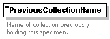 | source | <xs:element name="PreviousCollectionName" type="xs:string" minOccurs="0"> <xs:annotation> <xs:documentation>Name of collection previously holding this specimen.</xs:documentation> <xs:appinfo> <sea:FullName> </sea:FullName> <sea:Audience>BioCASE</sea:Audience> <sea:Audience>CODATA TDWG</sea:Audience> <sea:Reviewer> </sea:Reviewer> <sea:ExistingStandards> </sea:ExistingStandards> <sea:Content>Name of collection previously holding this specimen.</sea:Content> <sea:Examples> </sea:Examples> <sea:Comments> </sea:Comments> <sea:Rules> </sea:Rules> <sea:EditorialNotes> </sea:EditorialNotes> </xs:appinfo> </xs:annotation> </xs:element> |