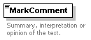 | source | <xs:element name="MarkComment" minOccurs="0"> <xs:annotation> <xs:documentation>Summary, interpretation or opinion of the text.</xs:documentation> <xs:appinfo> <sea:FullName> </sea:FullName> <sea:Audience>BioCASE</sea:Audience> <sea:Audience>CODATA TDWG</sea:Audience> <sea:Reviewer> </sea:Reviewer> <sea:ExistingStandards> </sea:ExistingStandards> <sea:Content>Summary, interpretation or opinion of the text.</sea:Content> <sea:Examples> </sea:Examples> <sea:Comments> </sea:Comments> <sea:Rules> </sea:Rules> <sea:EditorialNotes> </sea:EditorialNotes> </xs:appinfo> </xs:annotation> <xs:complexType> <xs:simpleContent> <xs:extension base="xs:string"> <xs:attribute name="Language" type="xs:language"/> </xs:extension> </xs:simpleContent> </xs:complexType> </xs:element> |